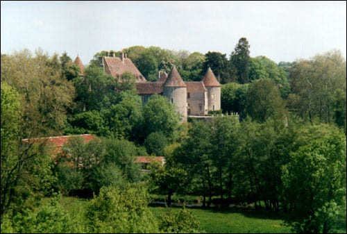 Le château de Chitry vu de la terrasse de Jules Renard, avec l'Yonne au premier plan
